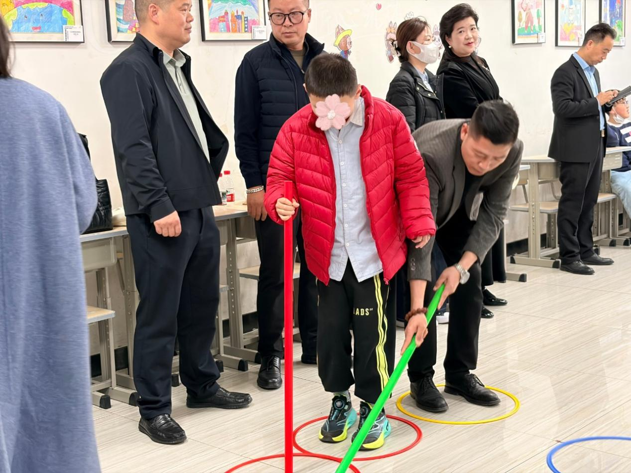 在陕西卓恩康复中心理事长倪娟和执行主任王江涛的引导下,企业家们沿着“个训室-教学区”的路线参观,近距离了解了各区域功能与日常教学流程。看到孩子们认真参与康复训练的身影,不少企业家驻足与孩子们交流,倾听康复故事。