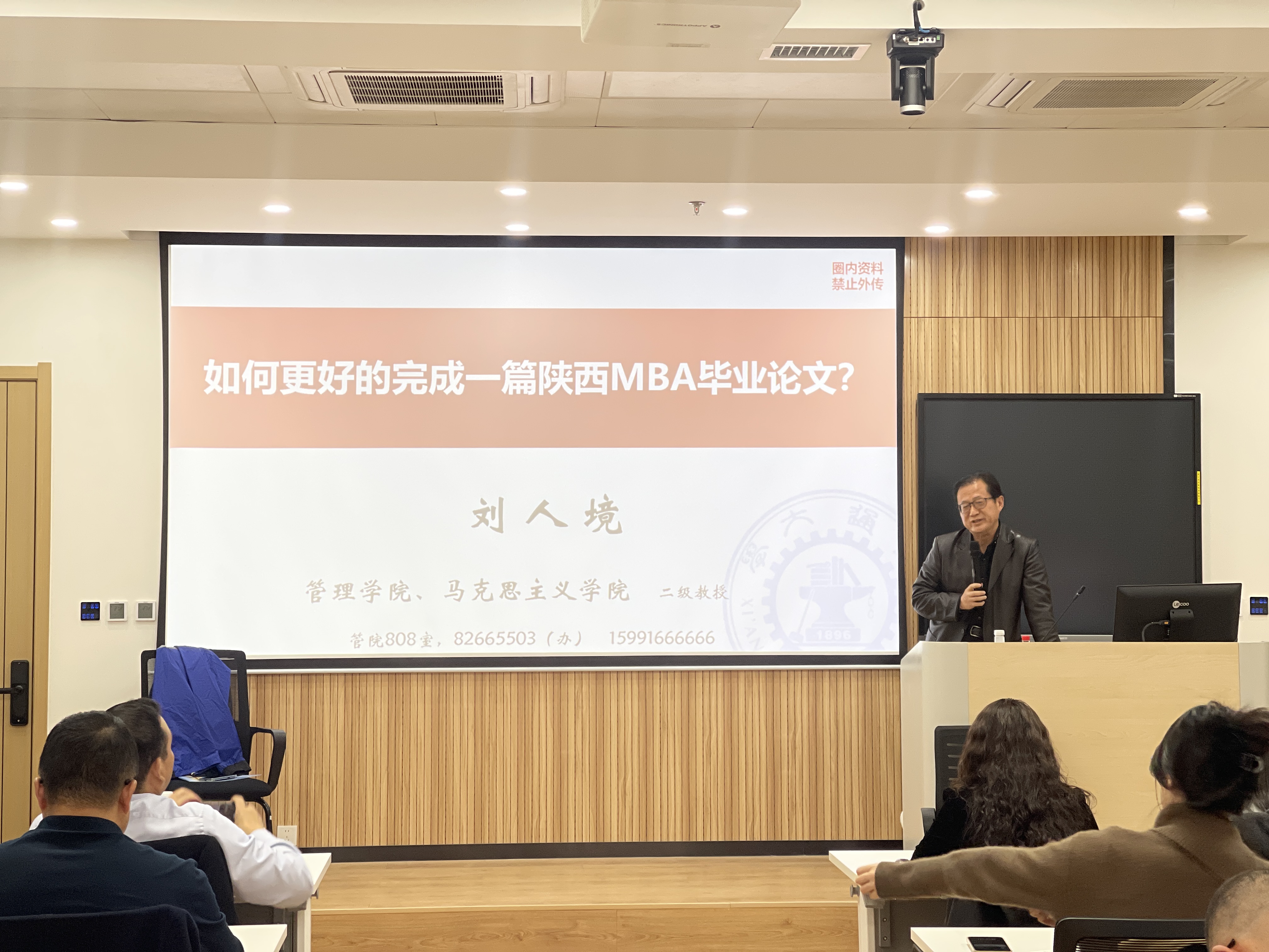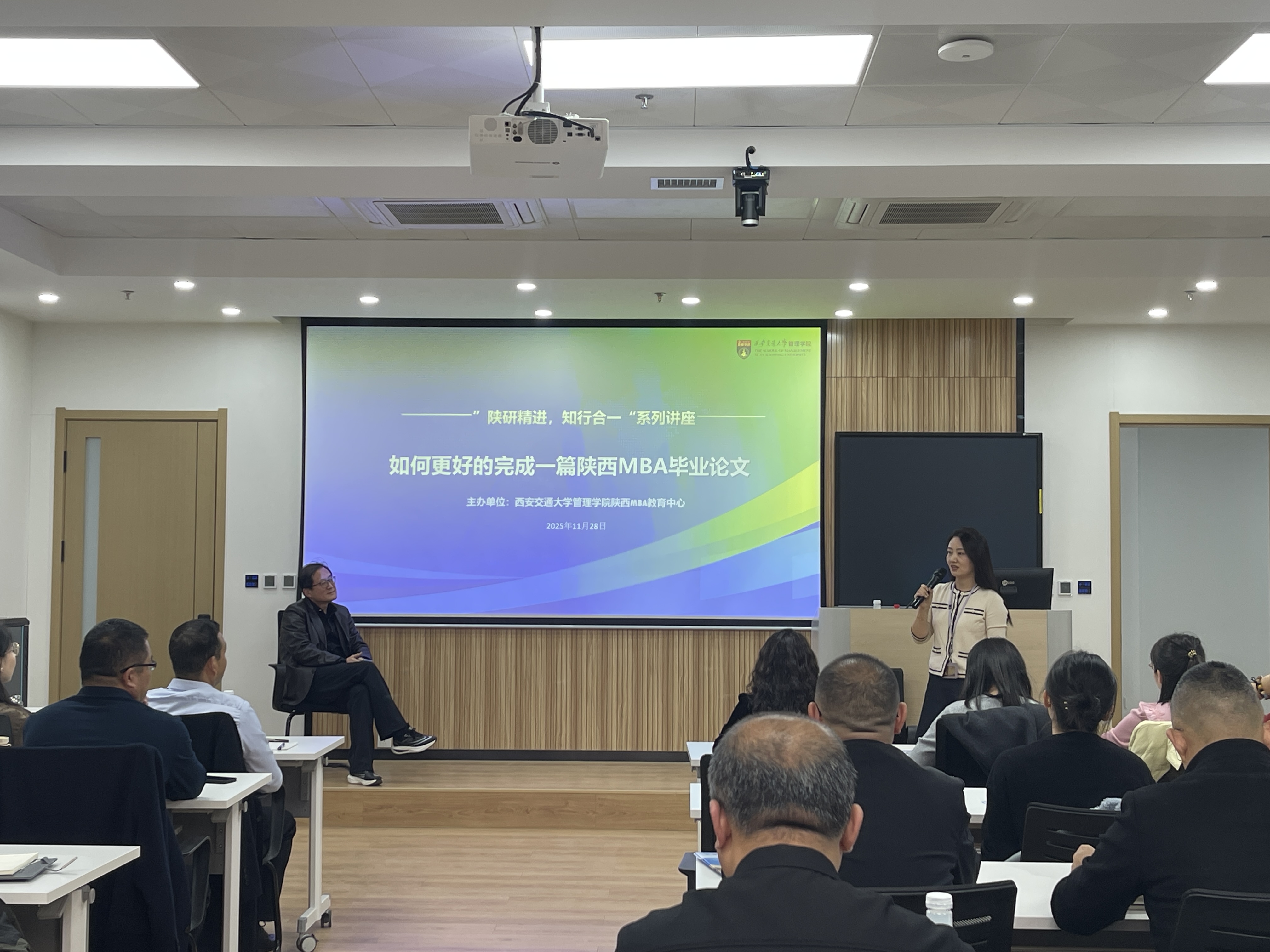 为助力西安交通大学管理学院陕西MBA同学顺利完成毕业论文这一学业关键环节,11月28日下午,“陕研精进,知行合一”系列专题讲座——《如何更好地完成一篇陕西MBA毕业论文》在管理学院南一楼306室举行。本次活动吸引了51位同学积极参与,现场座无虚席,气氛热烈。