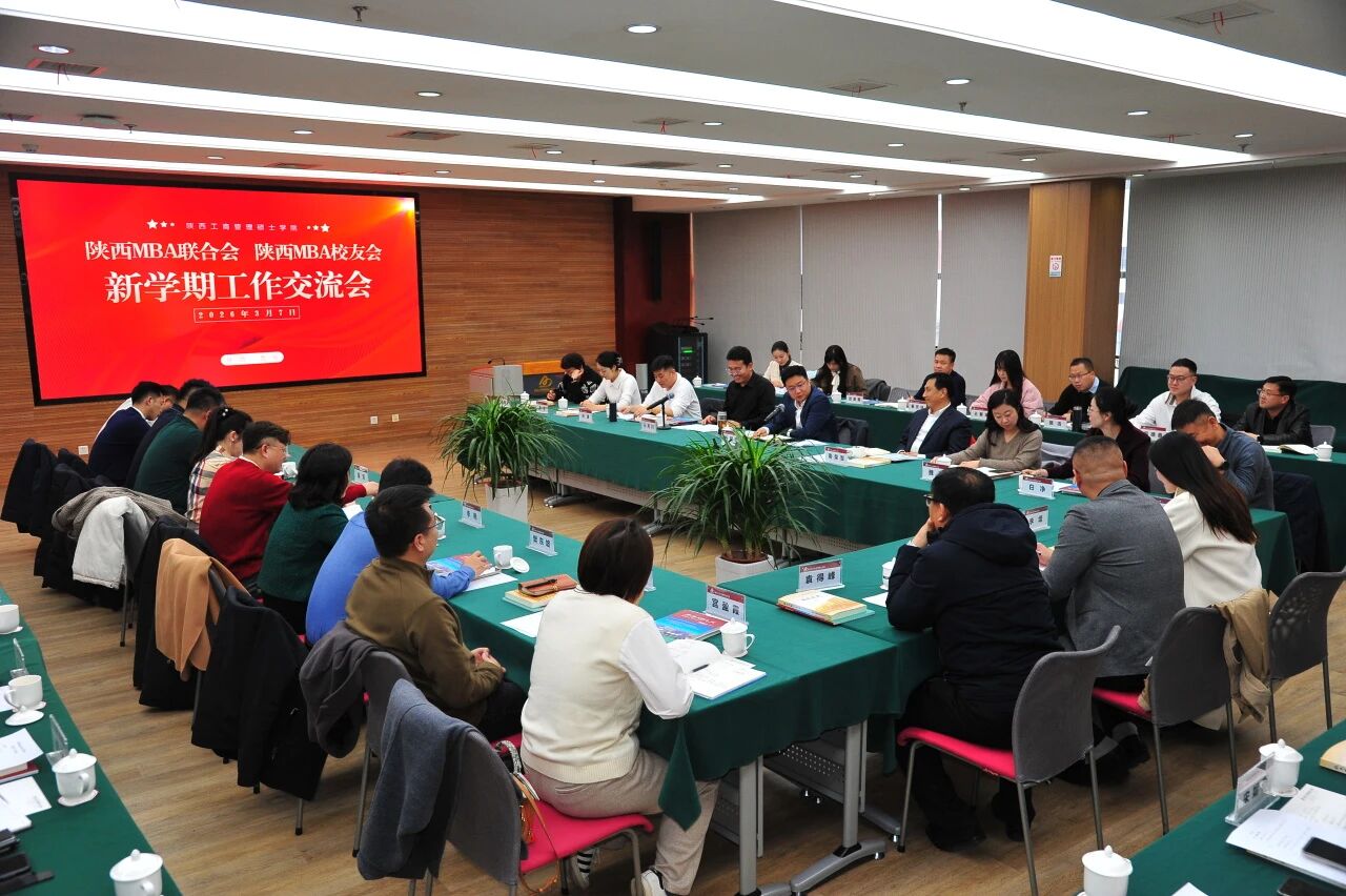 3月7日上午,陕西MBA联合会与陕西MBA校友会新学期工作交流会在学院浐灞校区召开。会议由联合会与校友会秘书长折保宏主持。会议增补了陕西MBA联合会主席团委员,专题学习了2026年全国两会精神,并对联合会与校友会年度重点工作进行了系统谋划和全面部署。陕西MBA校友会常务副会长南荣军,陕西MBA联合会主席石秀川、执行主席孙涛,学生工作部相关负责老师,主席团成员共同参加会议。