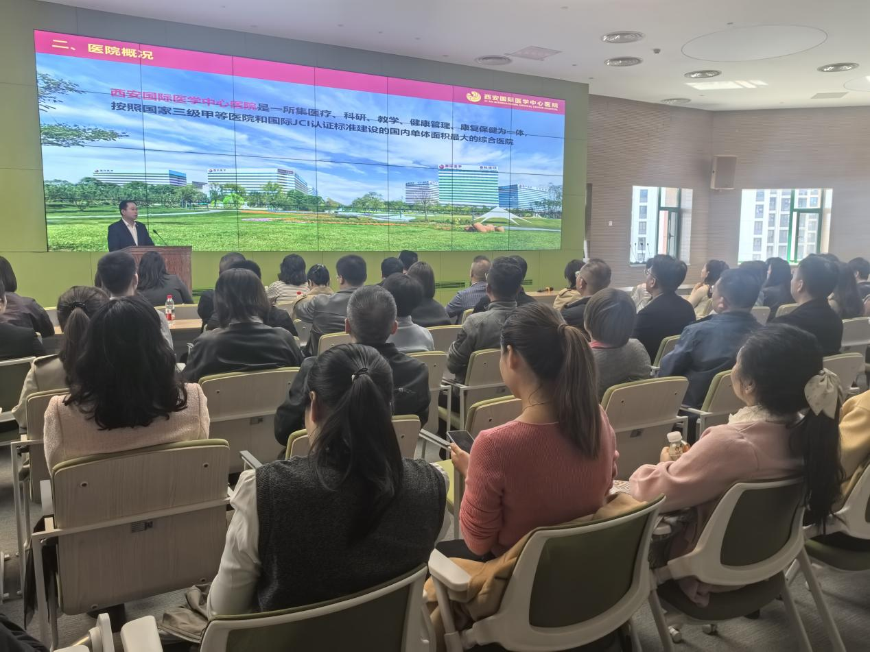 座谈交流环节,西安国际医学中心医院品牌发展部郭云鹏主任致欢迎辞,并希望以此次研学为契机,搭建沟通桥梁,共探医院管理新思路、新方法。