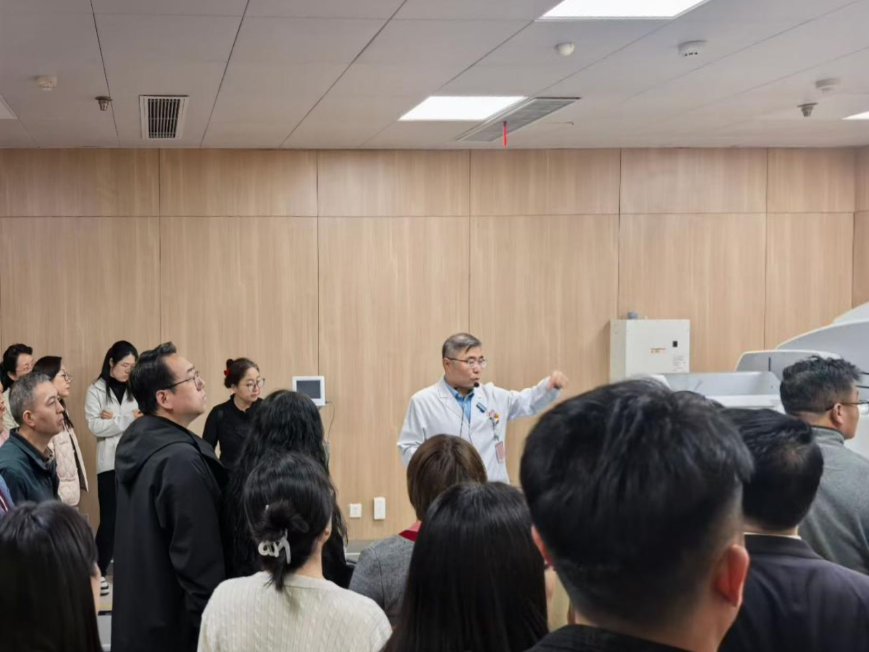 大家首先参观了代表肿瘤治疗前沿技术的质子中心,详细了解了质子治疗系统的原理、优势及建设运营情况,深刻感受到了尖端医疗技术为患者带来的生命希望。