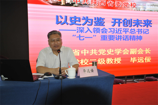 随后,陕西省社科联党组成员、秘书长苗锐军发表讲话,并对此次培训提出了几点希望。一是希望通过这次培训,能为社科类社会组织提升业务能力和水平、促进规范有序发展打下一个良好的基础;二是希望通过此次培训,明确培训的目的,进一步提升对开展党史学习教育重要意义的认识,进一步提高社科类社会组织自身能力建设;三是希望通过此次培训能够明确学习需求,确保学有所获,要始终绷紧意识形态领域安全这根弦,作好传达学习,抓好贯彻落实。典礼仪式结束后,由陕西省委党校教授毕远佞作了《学习习近平总书记在庆祝中国共产党成立100周年大会上重要讲话精神》的主题报告。