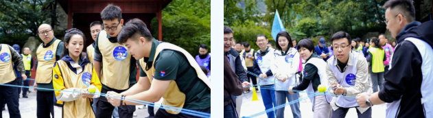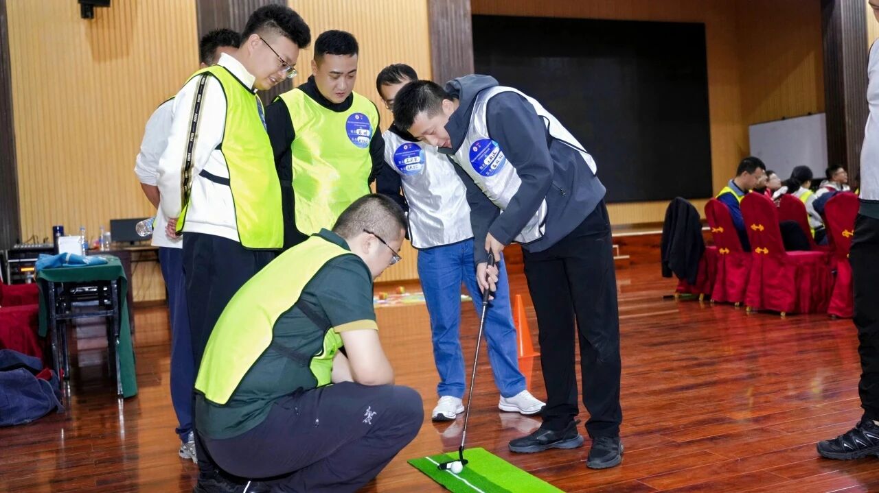 团队成员手拉细线搭建平行轨道,需通过精准配合使网球安全抵达终点。反复尝试、倾听配合,学员们体会到了“步调一致”的团队真谛。