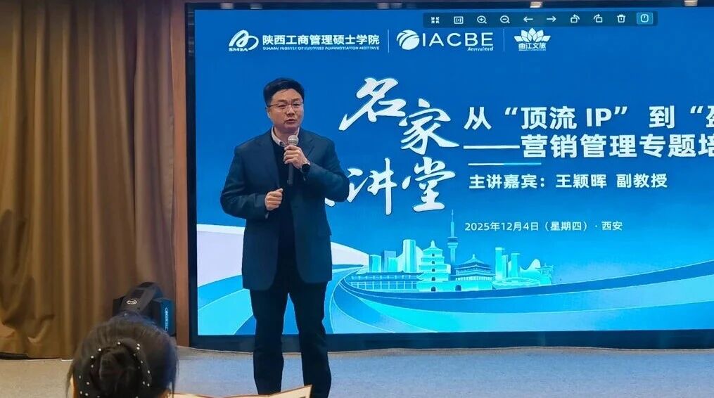 12月4日,陕西工商管理硕士学院第110期“名家大讲堂”走进西安曲江文化旅游股份有限公司。西北工业大学管理学院王颖晖副教授带来题为“从‘顶流IP’到‘盈利引擎’”的营销管理专题报告,为曲江文旅中高层管理人员提供了富有前瞻性和深度的行业见解,活动由学院学生工作部部长、招生办公室主任折保宏主持。