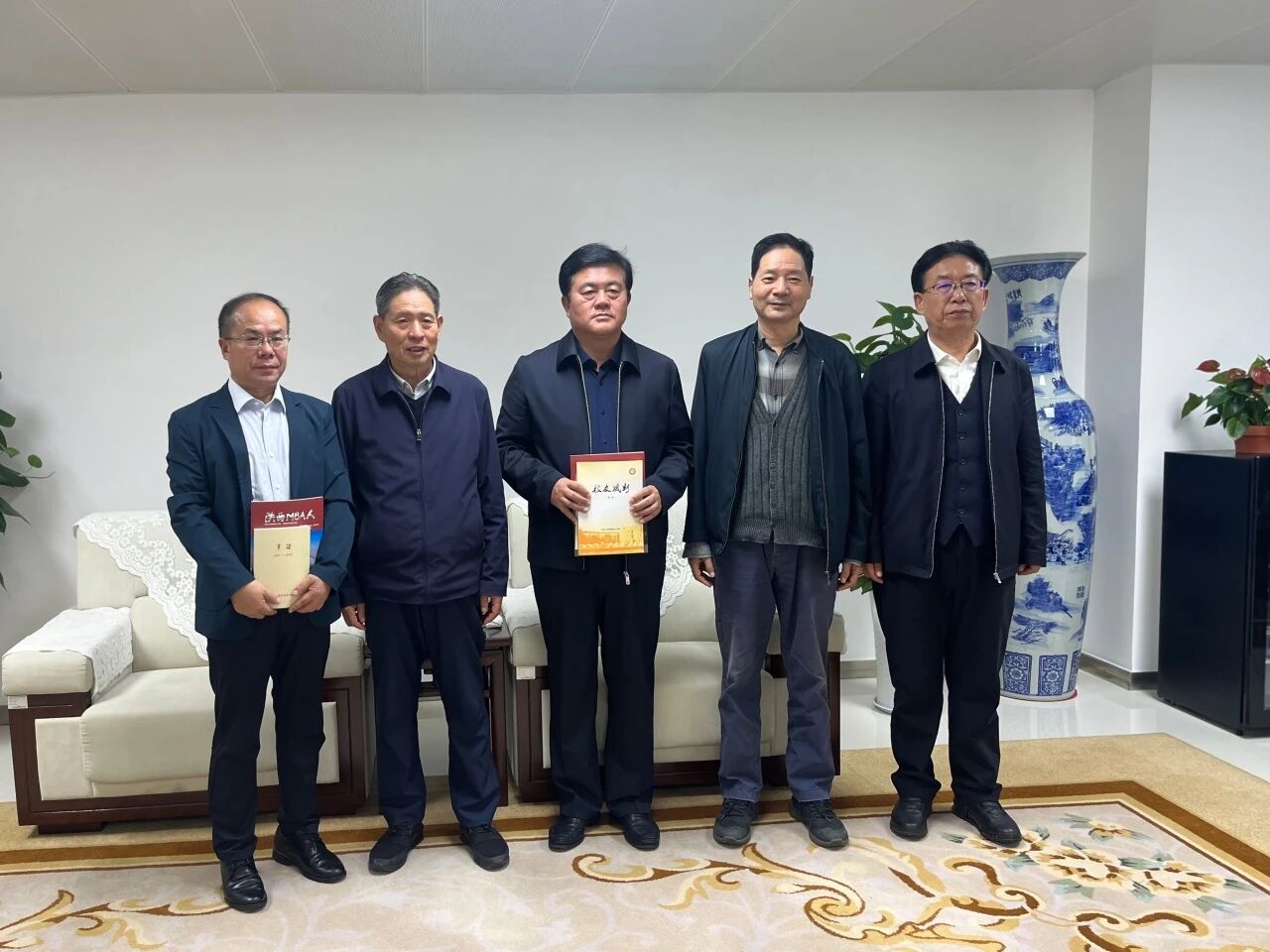 10月10日下午,陕西工商管理硕士学院第一副院长杨希文、党委书记刘德安一行到访陕西榆林能源集团有限公司(以下简称“榆能集团”),开展调研并交流座谈。榆能集团党委副书记、董事、总经理赵红旗,党委副书记、董事姬世虎,人力资源部部长焦鹏,陕西工商管理硕士学院党委委员、学生工作部部长、招生办公室主任折保宏,教学管理部副部长吴丽娜参加座谈。