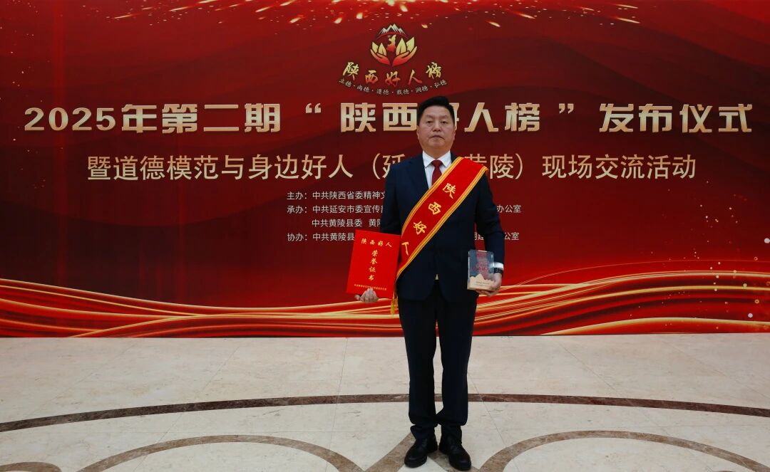 11月5日,由中共陕西省委精神文明建设办公室主办,中共延安市委宣传部、中共延安市委精神文明建设办公室、中共黄陵县委、黄陵县人民政府承办的2025年第二期“陕西好人榜”发布仪式暨道德模范与身边好人现场交流活动在延安市黄陵县新时代文明实践中心举行。际华三五一一实业有限公司党委书记、执行董事、总经理李晓刚凭借在企业转型与民生服务中的诚信担当,光荣当选“陕西好人”。