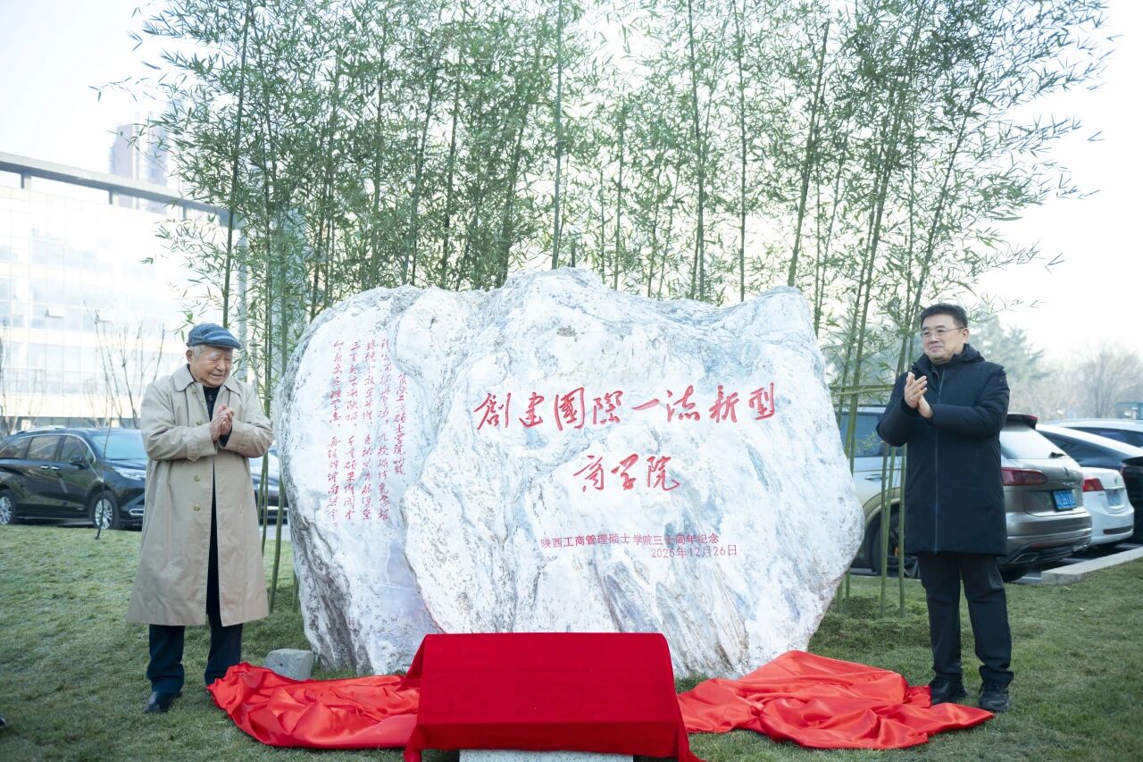 程安东老省长和徐明非副省长一行检查了学院浐灞校区体育设施建设情况,共同为校友捐赠的纪念石揭幕,走进课堂看望了正在上课的EMBA师生。