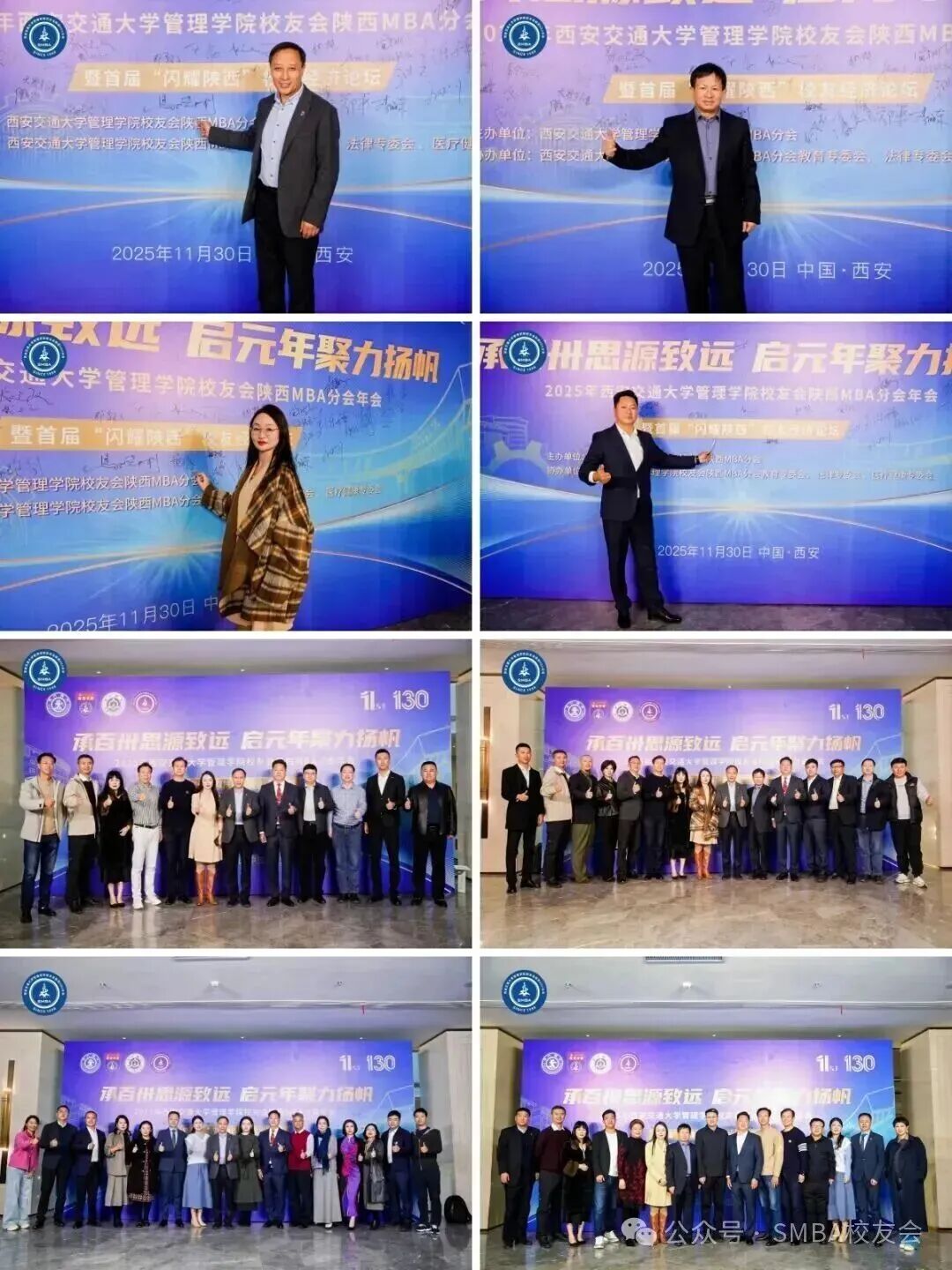 11月30日,2025年西安交通大学管理学院校友会陕西MBA分会年会暨首届“闪耀陕西”校友经济论坛在西安隆重召开。本次年会以“承百卅思源致远 启元年聚力扬帆”为主题,管理学院党委书记、学院校友会秘书长马晓彬、副院长舒成利出席活动,各界嘉宾,管理学院教师代表、校友服务与发展中心、陕西MBA中心老师,兄弟院校教师及校友代表,管理学院校友会各分会代表与200余位陕西MBA分会校友共同参与此次大会。
