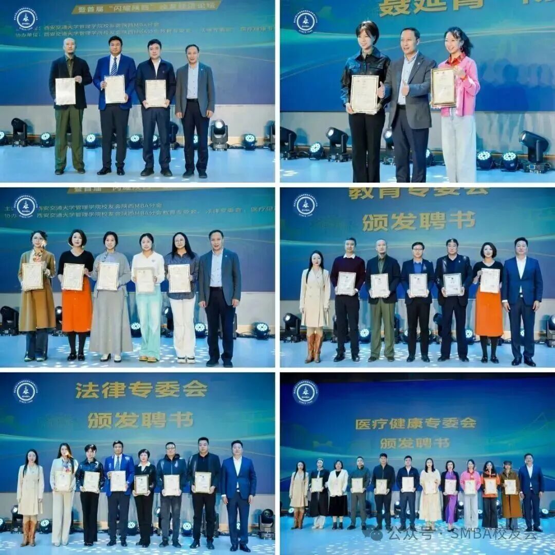 马晓彬书记、黄非副主任、李晓刚会长分别为新任理事会成员和陕西MBA分会教育、法律、医疗健康专委会成员颁发聘书。