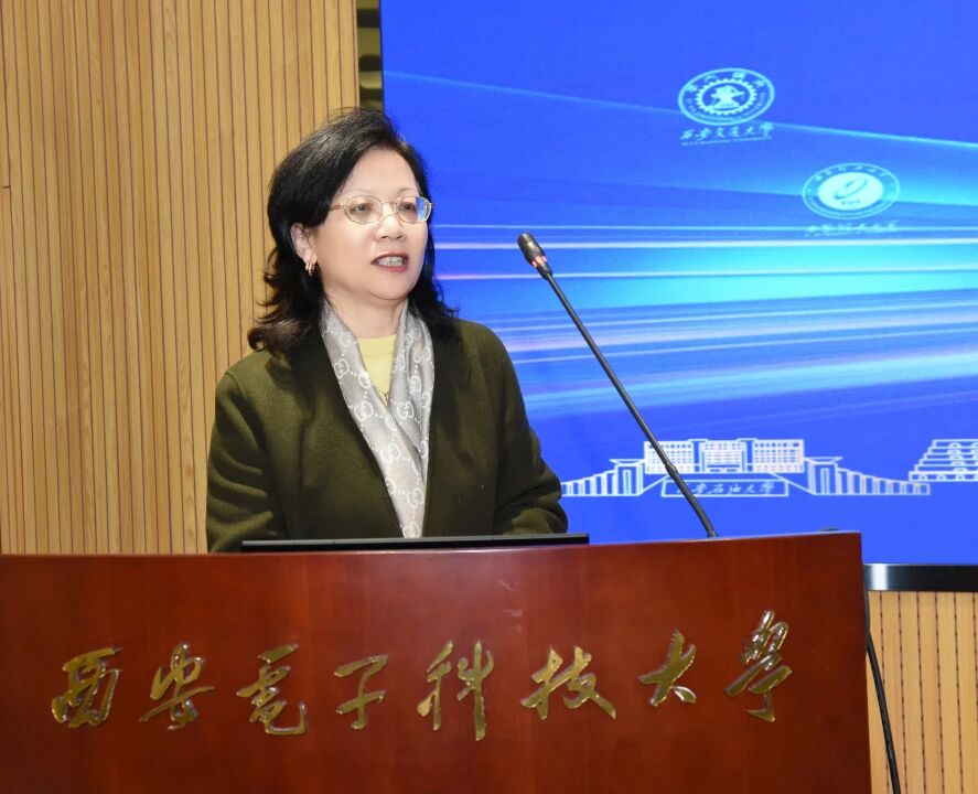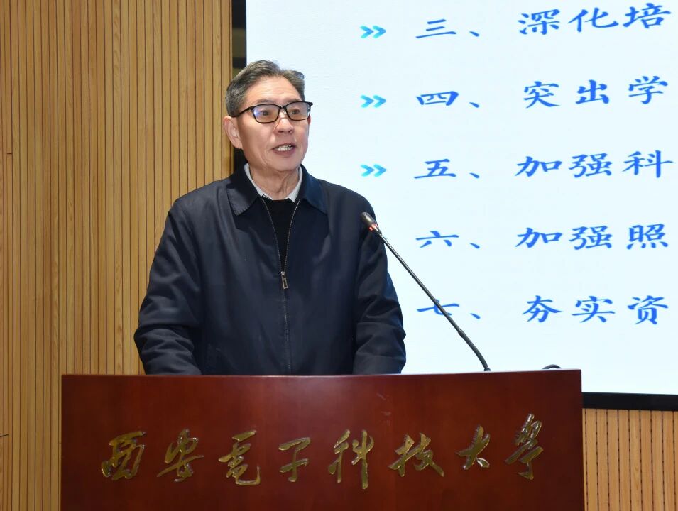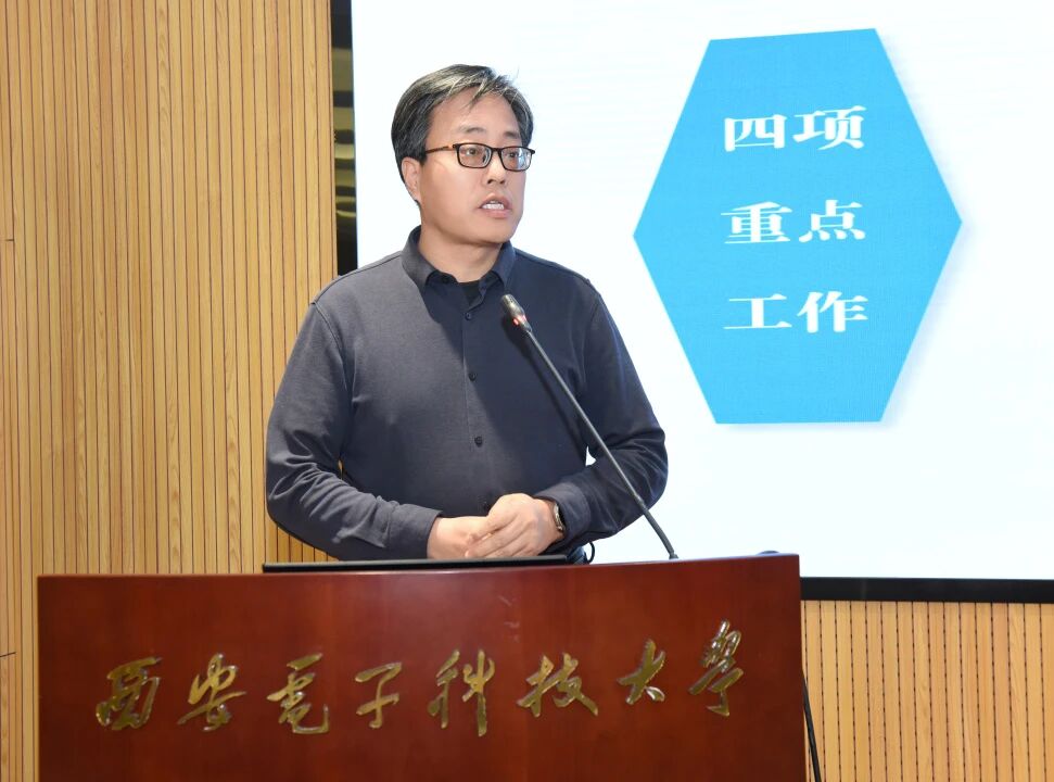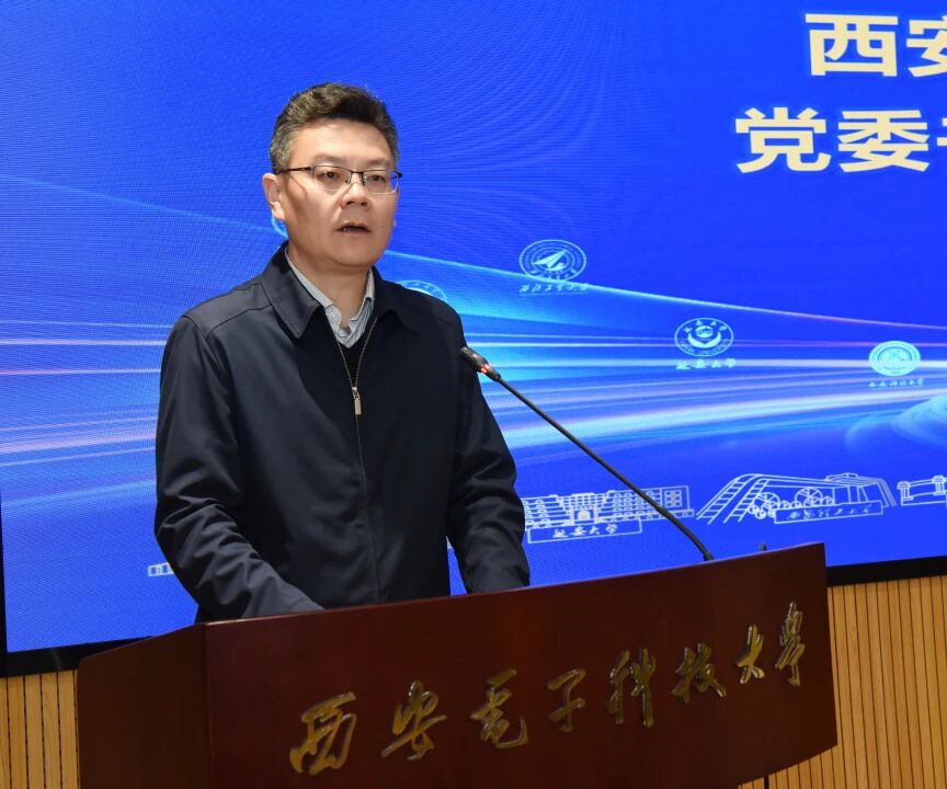 陕西省原省长程安东、陕西省政府学位委员会秘书长朱晓冬出席会议并讲话,西安电子科技大学党委书记任小龙致辞,学院第一副院长杨希文作2025年度工作报告,会议由党委书记刘德安主持,副院长杨志刚、田高良,院长助理魏安,西安交通大学副校长严俊杰、西安电子科技大学原副校长谢军占、延安大学副校长谭虎娃、西安科技大学副校长李迎波、西安石油大学副校长张君涛出席会议。