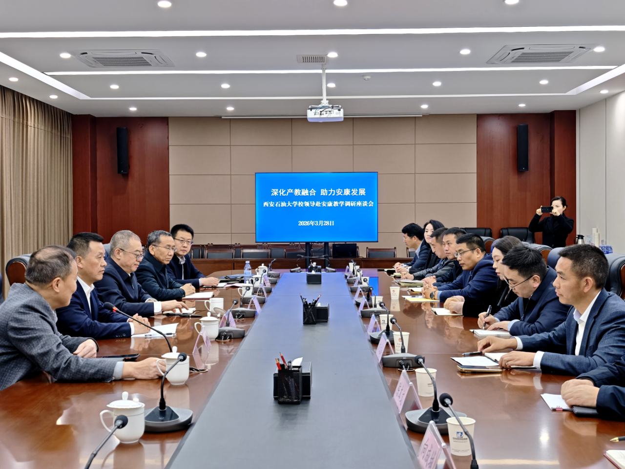 3月27日至28日,西安石油大学校党委书记常江带队赴安康市,与安康市委市政府领导举行座谈交流,走访安康学院,出席西安石油大学陕西MBA安康班2026年春季新学期开学典礼。西安石油大学校党委副书记张木,党委办公室(校长办公室)、经济管理学院、继续教育学院(培训中心)负责同志陪同参加相关活动。