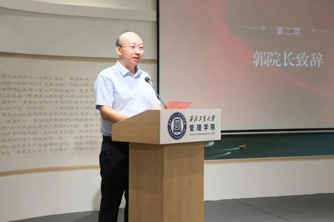 雄壮的国歌拉开典礼的帷幕。郭云涛副院长致辞中首先代表学校和学院对2025级陕西MBA新生加入西北工业大学大家庭表示衷心祝贺和热烈欢迎。郭院长简要介绍了西北工业大学和管理学院的发展历程和建设成就,并寄语新生们要坚守初心、笃学不怠,锤炼自身管理素养与实践创新能力,在百年未有之大变局的时代,迎难直上,勇毅前行,实现个人理想的同时,为中国式现代化建设和中华民族伟大复兴建功立业。