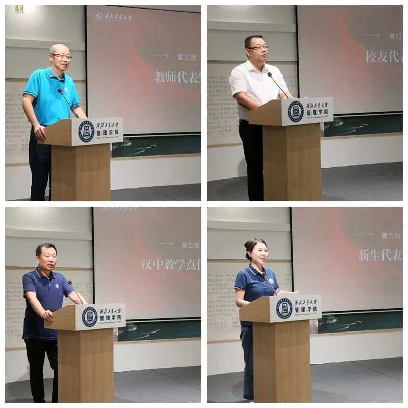 新生代表、来自汉中市汉台区七里街道的樊媛在发言中表达了加入西工大陕西MBA大家庭的自豪与骄傲。她从“归零”“融汇”“躬行”三方面分享感悟,与大家共勉,号召大家以“知”为桨,以“行”为舟,携手并进,砥砺前行,在未来成就更好的自己。