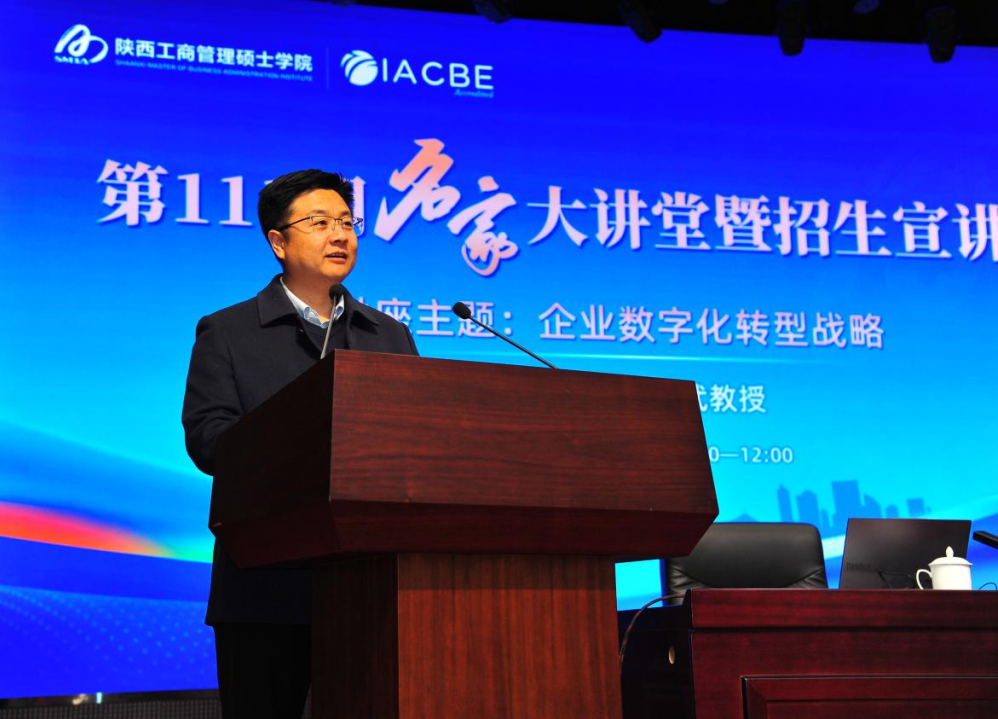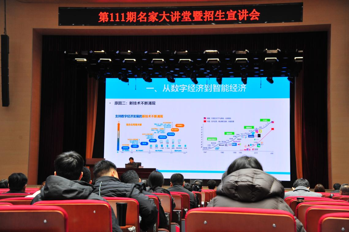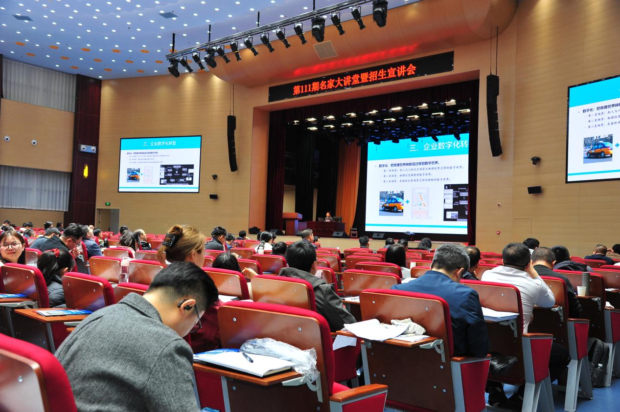 3月14日上午,学院第111期名家大讲堂在热烈的学术氛围中拉开帷幕。本期大讲堂聚焦时代前沿,特邀西安交通大学廖貅武教授,以“企业数字化转型”为核心,为到场师生带来了一场思想盛宴。课程开始前,学院党委委员、招生办公室主任、学生工作部部长折保宏就学院2026年度招生工作进行了宣讲。